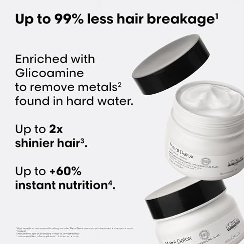 L’Oréal Professionnel Metal Detox Hair Mask 250ml, Prevent Breakage & Colour Fade from Hard Water, Moisturising Conditioner Treatment for Smooth, Shiny Hair, Prevent Damaged Hair