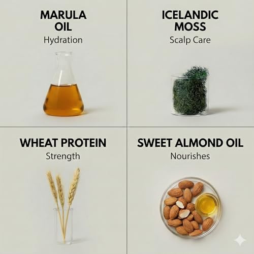 HYDRATION POWERED BY NATURE – Icelandic Moss locks in moisture and soothes the scalp, while Sweet Almond Oil adds silky softness and shine.