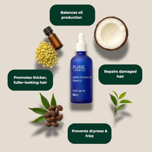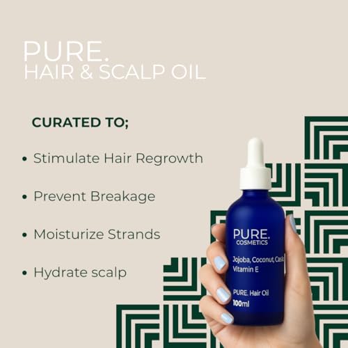 PURE. Scalp & Hair Oil – Repair Treatment with Castor, Jojoba, Coconut & Vitamin E – Hot Oil Hair Treatment for Dry Hair & Scalp, Perfect for Men and Women – Vegan 100 ML