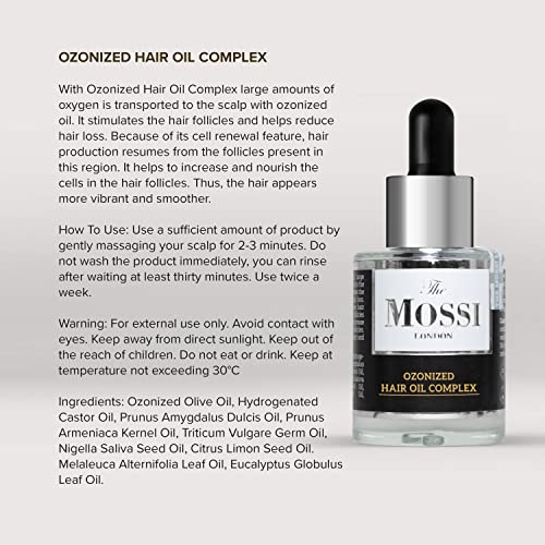 POWERFUL OZONIZED EFFECT: The ozonized content of the Mossi London Hair Oil Complex makes it an effective scalp treatment. It helps to transport a large amount of oxygen to the scalp, quickly stimulating the hair follicles and reducing hair loss.