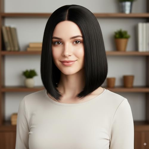 Human Hair Wig, Bob Wig with Lace Front, Wigs for Women Human Hair, 30cm Straight Bob Wig Human Hair, Natural Look for Daily Wear, Special Occasions, and Cosplay 【Premium Human Hair Wig】: Crafted from high-quality high-temperature fiber for a natural look and feel; Soft and lightweight design ensures comfort for all-day wear; Can be styled with heat tools for versatile looks 【Lace Front Bob Wig】: Features a delicate lace front for a seamless hairline; Pre-plucked hairline with baby hairs enhances realism; Breathable cap construction reduces heat buildup for extended wear 【Versatile Styling Options】: 30cm length straight bob wig suits various face shapes; Middle part design offers classic elegance; Ideal for quick hairstyle changes between work and social events 【Beginner-Friendly Design】: No glue required for easy application and removal; Adjustable straps ensure secure fit for head sizes up to 57cm; Perfect for first-time wig wearers seeking natural results 【Multi-Occasion Wear】: Suitable for professional settings, weddings, and costume events; Protective style helps maintain natural hair health; Saves time on daily hairstyling routines