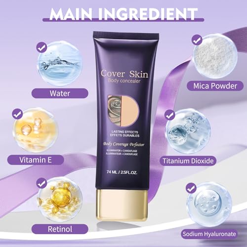 Body Full Coverage Perfector Waterproof, All over Complexion Perfector with Extra Large Body Makeup Brush,Tattoo Cover up Cream, Long-Lasting Sweat-Proof Concealer for Women