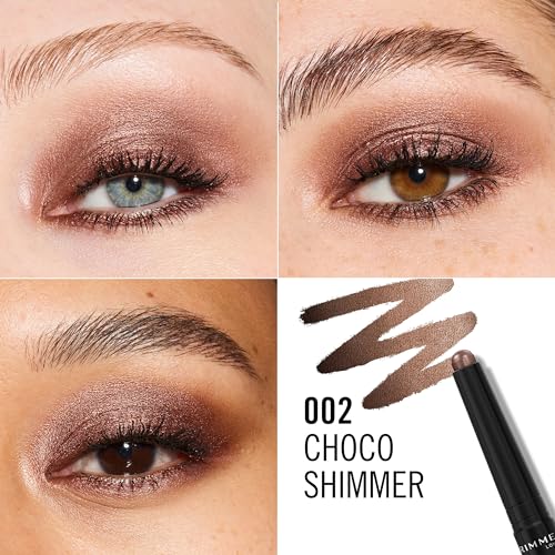 Rimmel Wonder’Last Shadow Stick, 002 Choco Shimmer, Easy To Apply, One Swipe Eyeshadow, Lasts All Day, Ultra-Creamy Formula, Buildable, Smudgeproof, Vegan