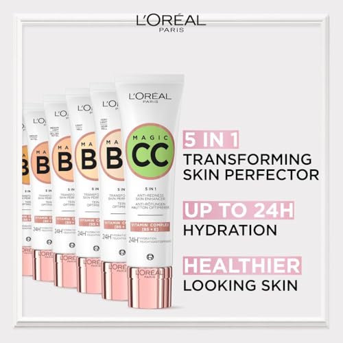 L’Oréal Paris Magic CC Cream with SPF 11, Anti-Redness and Colour Correcting, With Vitamins B5 and E, Lightweight Hydrating Formula Adapts to Skin Tone for a Natural Glowy Finish, 30 ml