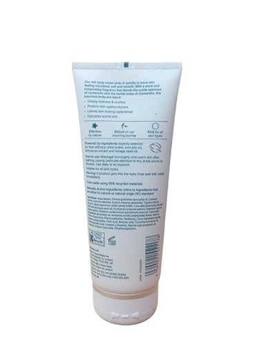 Our rich body cream sinks in quickly to leave skin feeling nourished, soft and smooth. With a warm and invigorating fragrance that blends the subtle spiciness of cardamom with the herbal notes of chamomile, this luxurious bodycare blend: *Deeply hydrates & soothes *Protects skin against dryness *Leaves skin looking replenished *Delicately scents skin