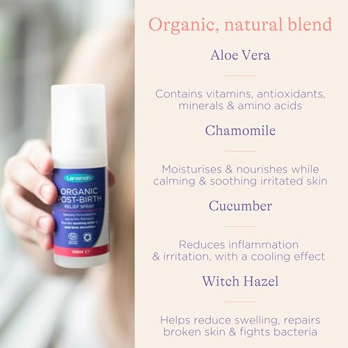 Lansinoh Organic Perineal Spray – 100ml – Cooling Post-Birth Relief – 99% Natural Ingredients (with Aloe Vera, Chamomile & Cucumber) – Gentle on Sensitive Skin – Hospital Bag Maternity Essentials