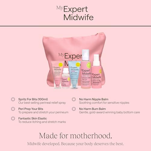 My Expert Midwife Mum to Be Pregnancy and Postnatal Maternity Essentials for hospital bag with Fantastic Skin Elastic, Peri Prep Your Bits, Spritz for Bits, No Harm Nipple Balm & No Harm Bum Balm