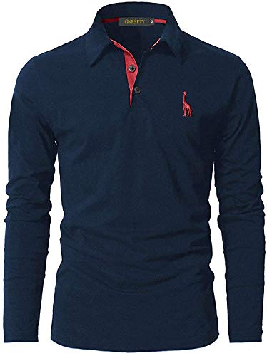 Mens Long Sleeve Polo Shirt Cotton Golf Giraffe Tops
