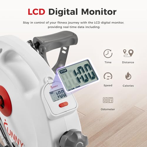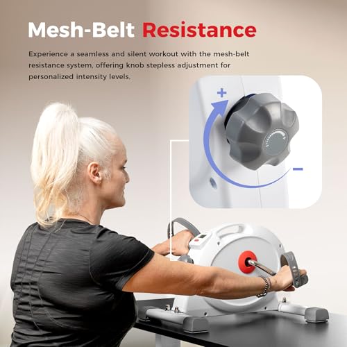 Sunny Health & Fitness Mini Exercise Bike, Under Desk Dual Function Arm & Leg Seated Pedal Exerciser for Senior Workout, Desk Cycle Cardio Training at Home, Optional Free SunnyFit App Connected