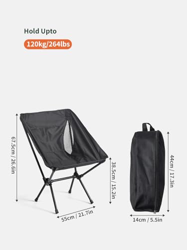 Yabano Portable Camping Chair, Ultralight Folding Backpacking Chair with Carry Bag, Compact & Lightweight for Hiking, Mountaineering, Beach, Picnic & Outdoor Adventures