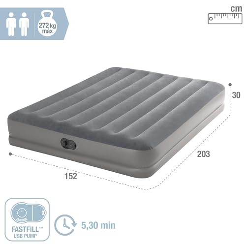 Intex Dura-Beam Standard Series Prestige Mid-Rise Air Mattress with Fastfill USB Powered Internal Air Pump