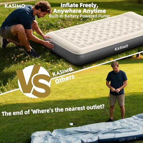 KASIMO Single Inflatable Mattress, TPU Airbed with Built-in Battery Removable Pump, Self inflating Blow up Bed with Pillow, Strong Support All Night,No Lost Air for Home Guests Camping(190x90x22cm)