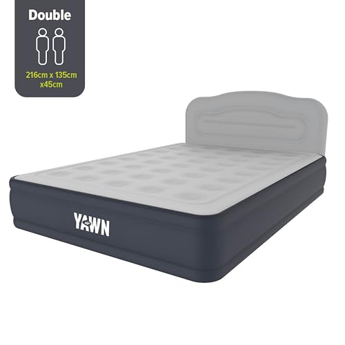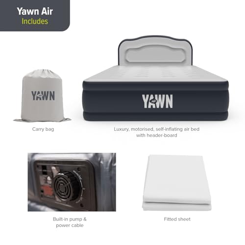 YAWN AIR Deluxe Self-Inflating Airbed with Custom Fitted Sheet Included – Double Size – Great Guest Bed, Camping Mattress – Built-in Pump & Headboard – Available in UK Single, Double & King