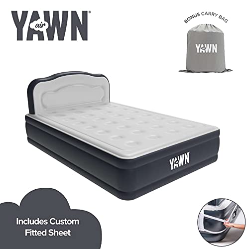 ULTIMATE LUXURY AIR BED: The YAWN air bed comes with a carry bag, making it easy to transport and store away, a built in headboard to prevent pillows falling off in the night and a fitted sheet which has been designed for ultimate comfort and convenience. Invite guests to stay over with confidence knowing they will have a comfortable nights sleep on the YAWN Air Bed.