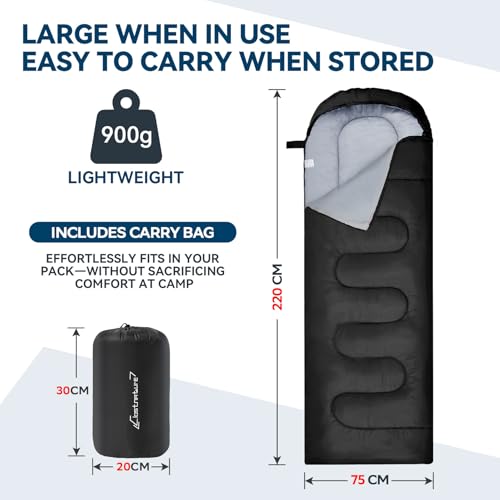 COMPACT AND EASY TO CARRY: This camping sleeping bag is designed with portability in mind—ideal for travellers, hikers, and campers who value space-saving gear. Weighing only 0.9kg, it won’t weigh you down on the trail or at festivals. When not in use, it compresses neatly into a compact 30x20x20cm size, making it easy to fit into backpacks, suitcases, or storage bins. Whether you’re heading into the hills or packing for a weekend getaway, this compact sleeping bag offers comfort that’s ready to go