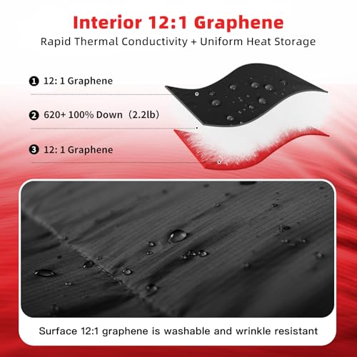 Down Sleeping Bag for Adults (620FP-RDS)-Graphene antistatic material,0 degree ultralight sleeping bag with packing bag, suitable for hiking, camping, and trekking