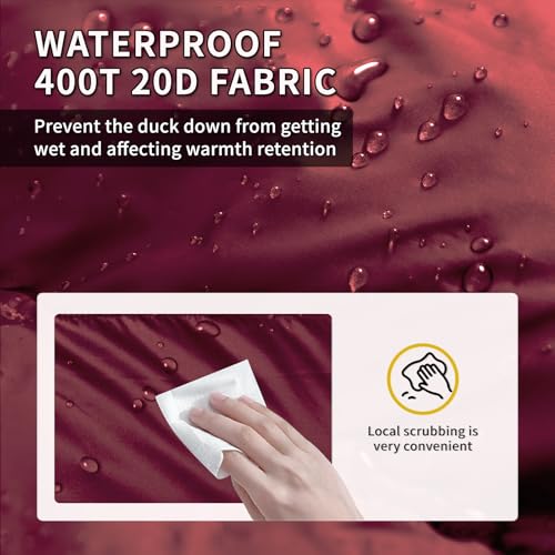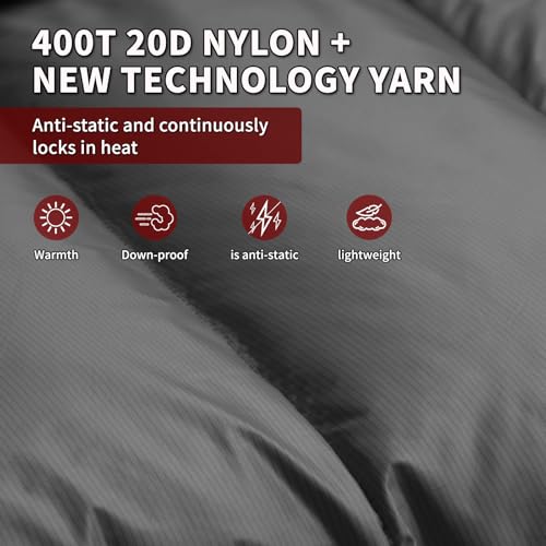 Special Design: This adult sleeping bag features 100g/㎡ of heat-locking down (approximately 1cm thick) from the shoulders to the soles of the feet. Even when the weight of the body causes the down to lose some of its fluffiness and warmth, the down continues to lock in warmth, preventing back heat loss and enhancing comfort for extended periods. This makes it an ideal choice for outdoor activities and hiking. The heat-locking down features an antibacterial surface layer to effectively inhibit bacterial growth, ensuring a restful sleep in the wild and rainforest.