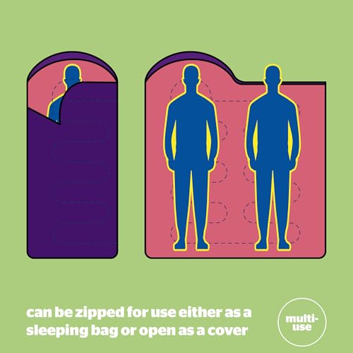 MULTI-USE: Can be zipped for use either as a sleeping bag or open as a cover.