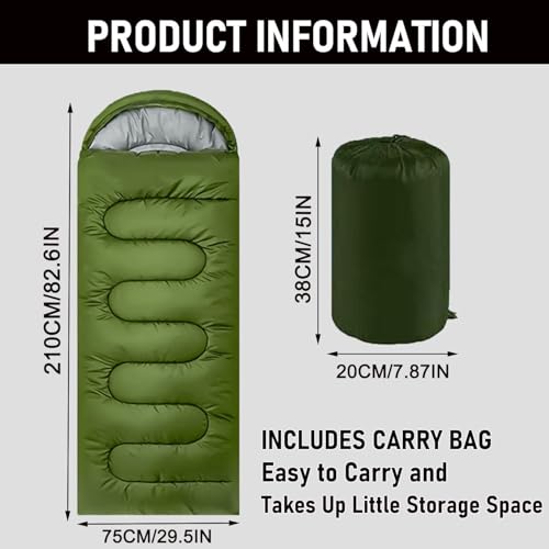 Sleeping Bag for Camping, for 3 Seasons, Comfortable Adult Blanket, Small Packed Size, Ultralight Carry Bag, Soft, Thick and Warm, for Outdoor Camping, Travel, Hiking.