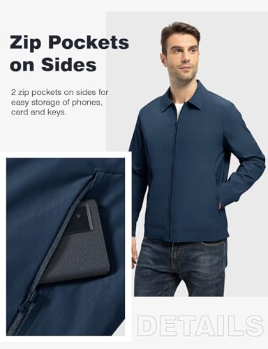 Rdruko Mens Summer Jackets Lightweight Smart Casual Jacket Light Bomber Jackets Outdoor Thin Windbreaker Coat with Zip Pockets