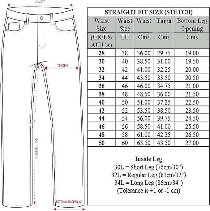 989Zé ENZO Mens Straight Leg Jeans, 5 Pocket Design, 2 Front Pockets, 2 Back Pockets and 1 Coin Pocket, Easy, Stretchy and Comfortable to Wear, Can be Paired with any Style of Tees and T shirts, Can be Worn all Year Around, Ideal for any Occasion including Holidays, Outdoor, Travel, Walking, Casual or Workwear, Zip Fly Fastening, Available in 5 Colours including Black, Dark Blue, Light Blue, Grey and Blue, Available in all waist sizes and 3 leg lengths, 30, 32, 34 inches, 98% Cotton, 2% Elastane, Machine Washable