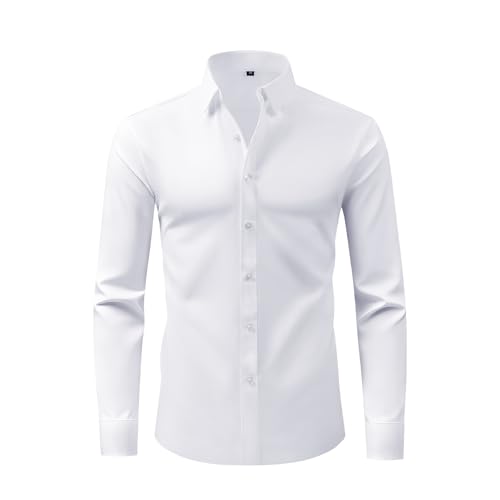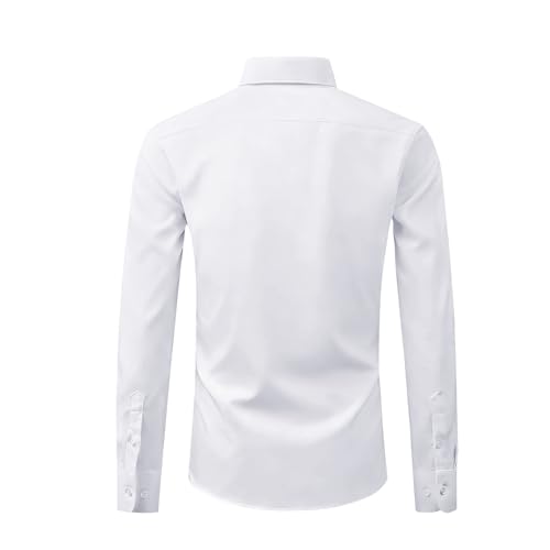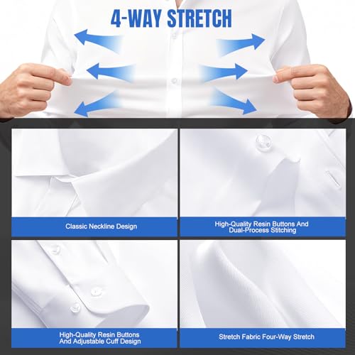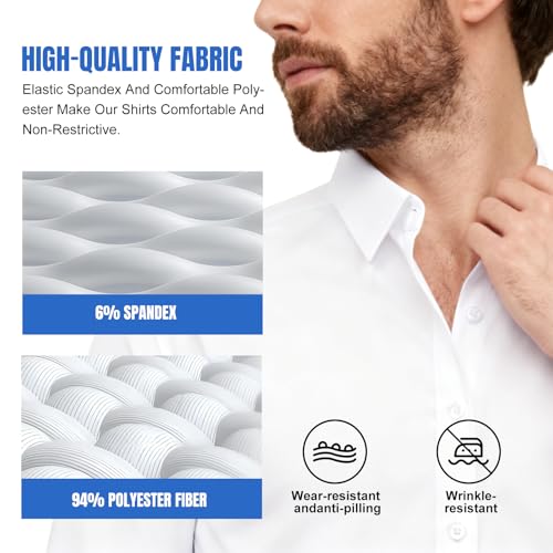 Mens White Long Sleeve Shirts 4-Way Stretch Wrinkle Free Long Sleeve Button Down Shirts with Pocket Casual Business Office Shirt