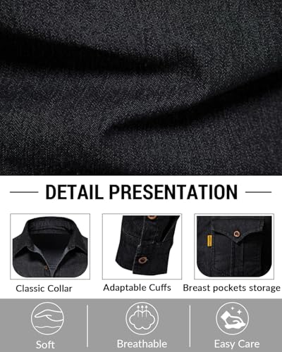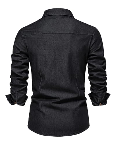 Morbuy Denim Shirts for Men Regular Fit Long Sleeve Casual Mens Cotton Collared Button Down black denim Jacket Shirts Top Autumn Winter Coats with Pocket