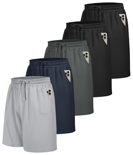 5 Pack Gym Shorts Men with Pockets UK Sports Breathable for Running Training