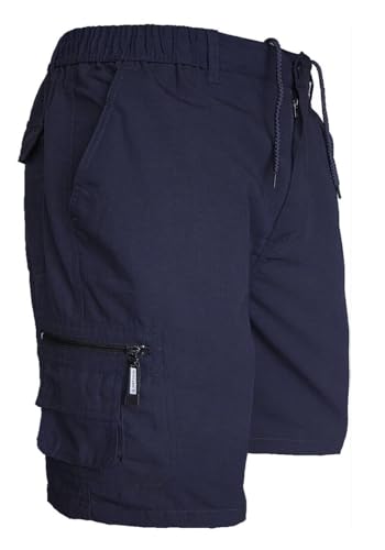 Mens Cargo Shorts Combat Multi Pocket Elasticated Waist Plain Lightweight Shorts