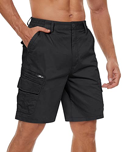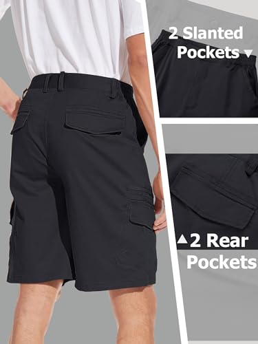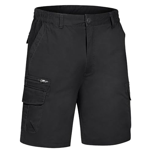 TACVASEN Men’s Shorts Elasticated Waist Cargo Shorts with Pockets Summer Breathable Work Shorts Multi Pockets Hiking Shorts
