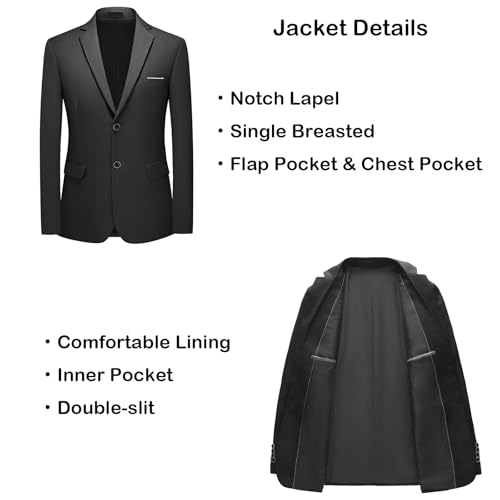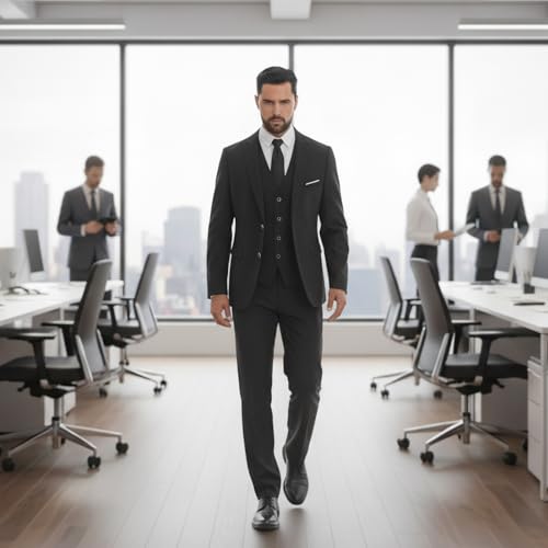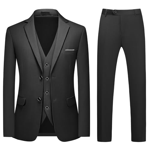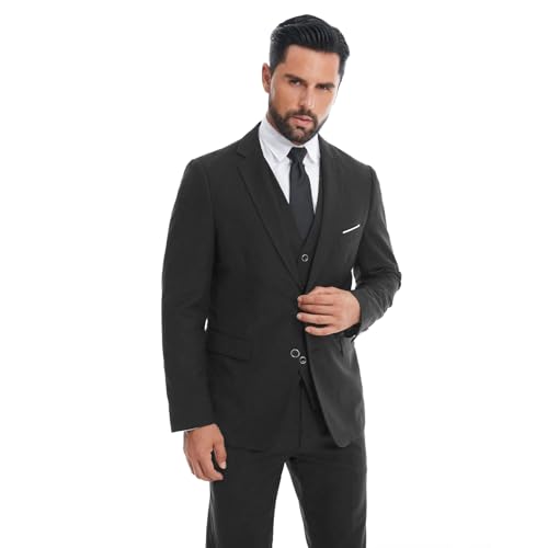 MODFUL Mens Suit 3 Piece Slim Fit Two Buttons Business Formal Tuxedo Blazer Waistcoat Trousers Wedding Set