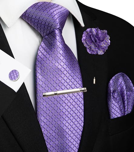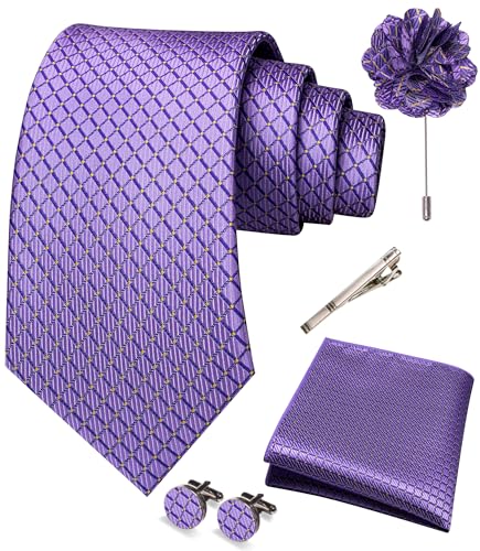 RBOCOTT Tie and Pocket square With Cufflinks,Lapel Pin,Tie Clip Sets for Men 5PCS