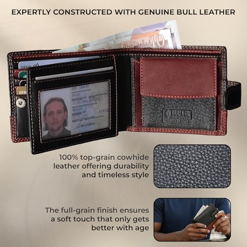 Premium Bull Leather Construction. Crafted from 100% natural cowhide top grain leather, this wallet blends rugged durability with classic elegance. The full-grain finish ensures a soft touch that only gets better with age.