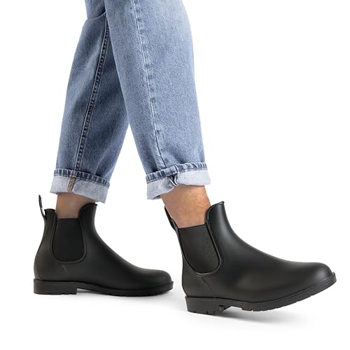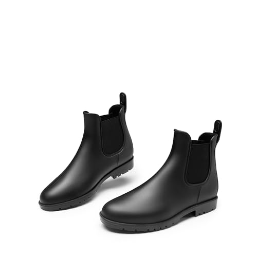 These women’s rain boots feature a water-resistant PVC upper, a wear-resistant PVC outsole, a cozy fabric lining, and a cushioned insole, ensuring lightweight, comfortable, and slip-resistant wear. Designed in the classic Chelsea style, these boots seamlessly blend timeless fashion with practicality.