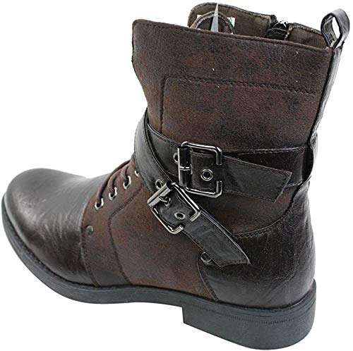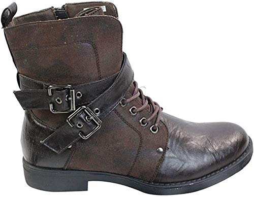 Elong Mens Punk Rock Goth Elmo Ankle Boots Brown Black Leather Buckle