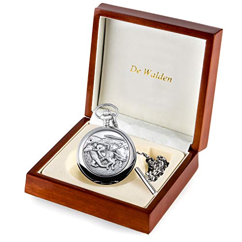 Pewter Front Case Feature with high quality engraving on the rear Watch Case. Watch Diameter is approx 45mm and boxed weight is approx 180g