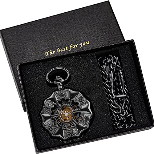 Be the first to review “Tiong Black Hollow Hand Wind Mechanical Pocket Watch, Black Dial Blue Roman Numerals Pocket Watches for Men Gifts”
