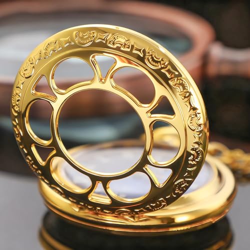 Tiong Quartz Pocket Watch Hollow Steampunk Blue Star Design Roman Numerals Pocket Watch with Chain Christmas Gifts