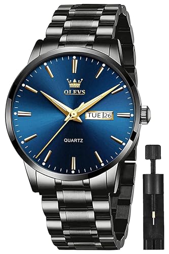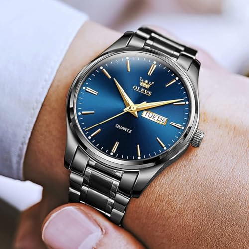 OLEVS Mens Watches Stainless Steel Waterproof Date Analog Quartz Watch Classic Luxury Dress Luminous Gold/Black/Blue/White Dial Wrist Watches for Men