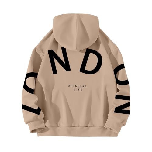 HUIFUAO London Hoodies for Women UK Oversized Sweatshirts for Women Letter Print Pullover Hoodie Women With Pocket and Drawstring