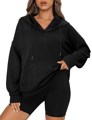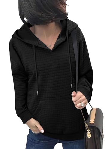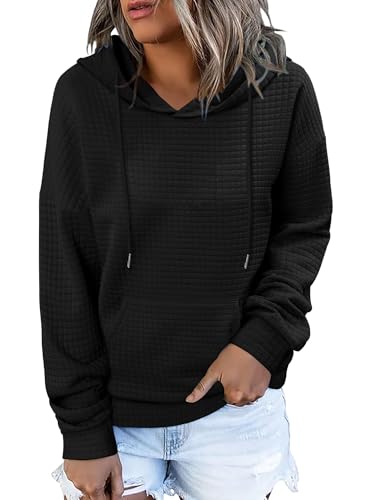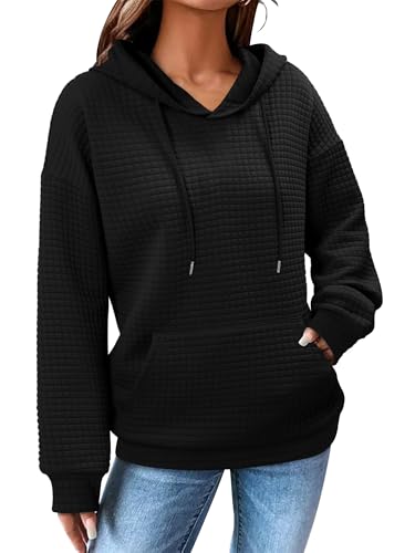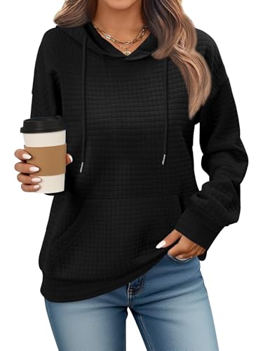 Magritta Hoodies for Womens UK Drawstring Waffle Fall Hooded Sweatshirts Long Sleeve Jumpers Oversized Plain Tops with Pocket