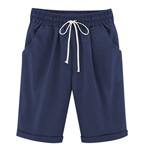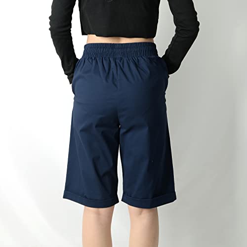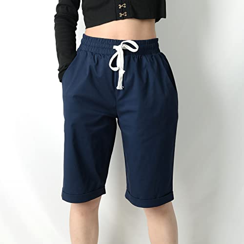 Women’s Casual Summer Shorts Drawstring Elastic Waist Knee Length Curling Jersey Bermuda Shorts