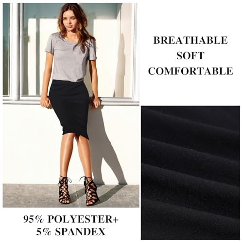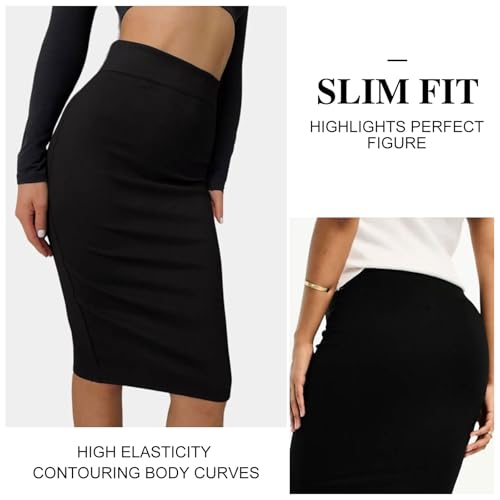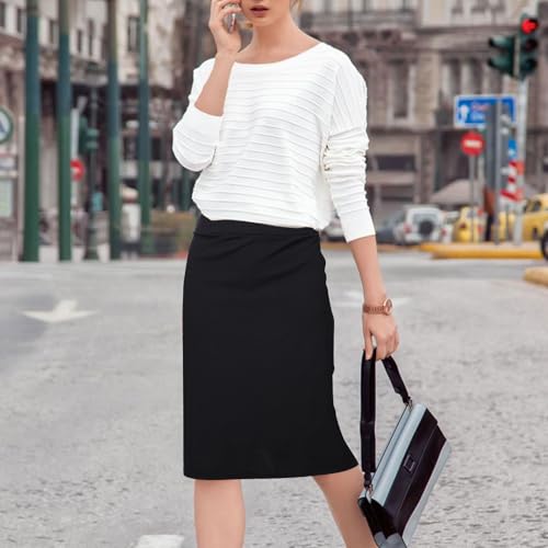 Lancry Black Skirt Knee Length,High Waisted Stretchy Pencil Skirt Midi Skirt for Women UK,Tight Black Pencil Skirt Office Ladies Women’s Skirts Elasticated Waist