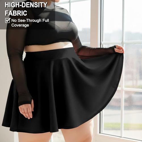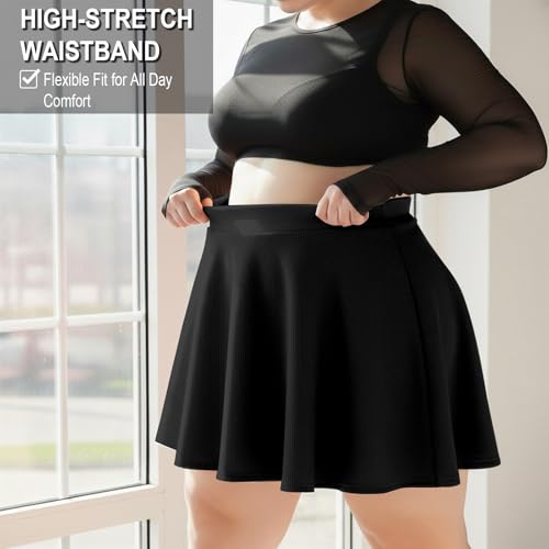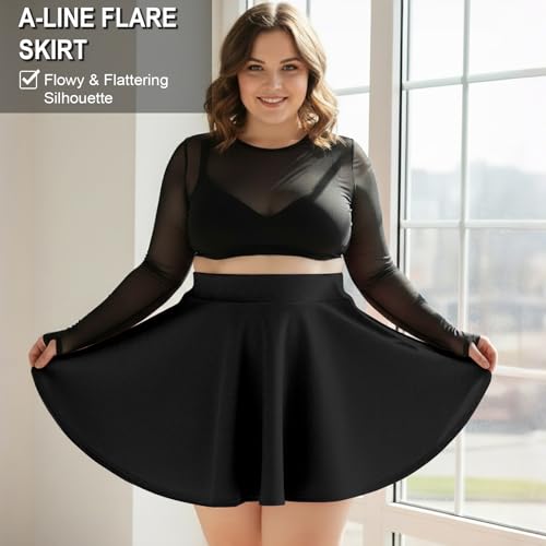 Moon Wood Women’s Ladies Mini Skater Skirt – Plus Size Elasticated Waisted Flared Casual Pleated Skirts