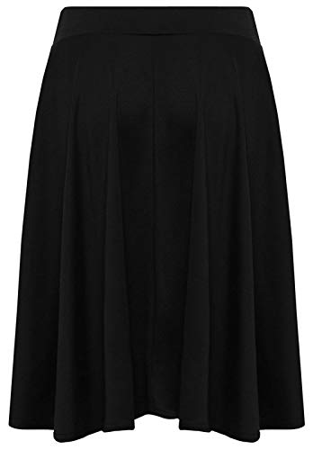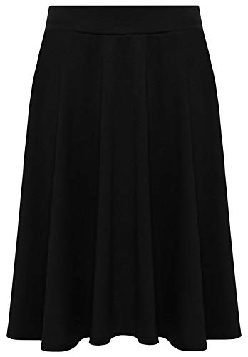 Womens Plain Soft Stretch Ladies Elasticated Waistband Knee Length Full FLA Swing Skater Midi Skirt