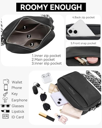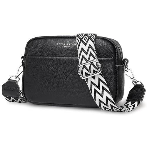 Crossbody Bag for Women, Genuine Leather Women’s Cross body Camera Bags Handbag with Adjustable Wide Strap, Over Shoulder Bag for Ladies Girls Travel Shopping Work Daily Use