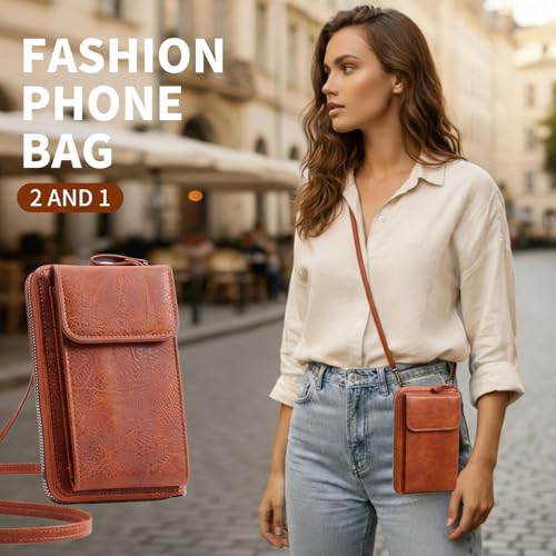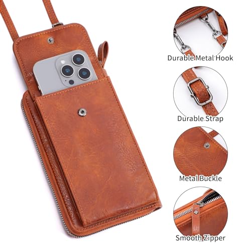 Genuine Leather Phone Bags for Women Crossbody, Waterproof Small Handbags Women, Unisex Phone Bag with Long Shoulder Strap and Zipped Card Slots