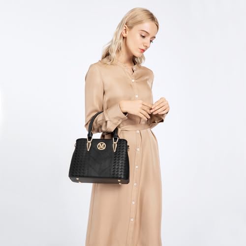 Miss Lulu Handbag for Women, Woven and Chevron Pattern, M Logo on The Front, Top Handle or Shoulder Bag