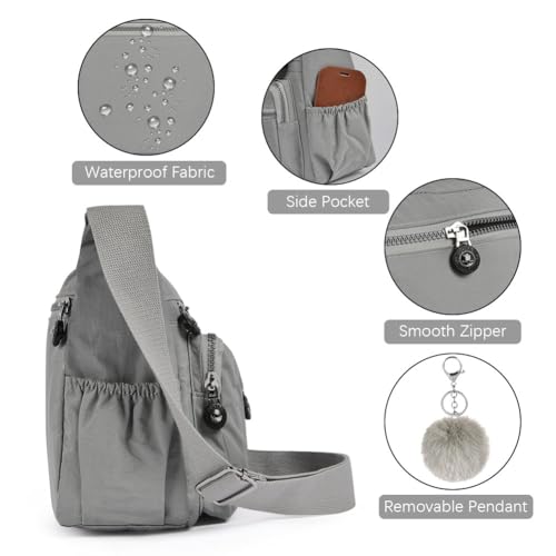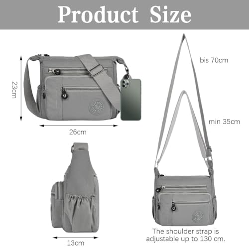 Women’s Multi-Pocket Casual Crossbody Bag, Multifunctional Travel Bag with Adjustable Shoulder Strap, Nylon Lightweight and Waterproof, for Shopping, Hiking, Everyday Use