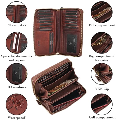 Women’s Leather Wallet – Large RFID Blocking Card Holder – Handmade Leather Clutch – Elegant Gift for Women